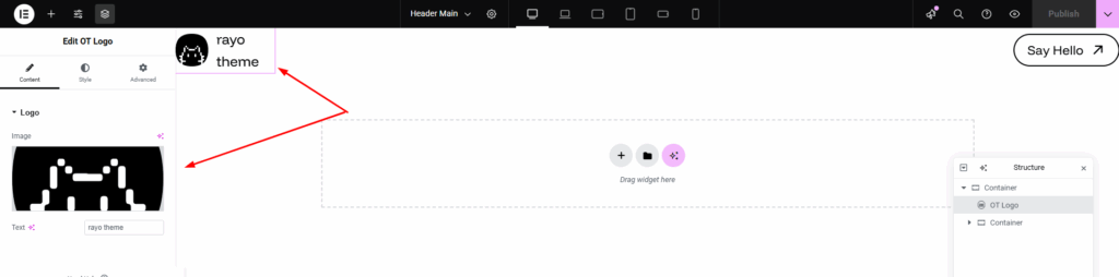 3. Edit content header as you want by elementor