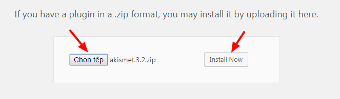 Step 4 – Click the Choose File button and select the plugin file you downloaded earlier to your computer then click Install Now